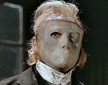 In Brian De Palma's Phantom of the Paradise, Winslow Leach becomes the Phantom after getting his face caught in a record press that mutilates half of his face and renders his right eye useless as a result. Winslow hides his scarred face with a silver owl-themed helmet/mask. Strangely enough, this helmet also has a black lens over the right eye hole, conveniently covering Winslow's damaged eye.